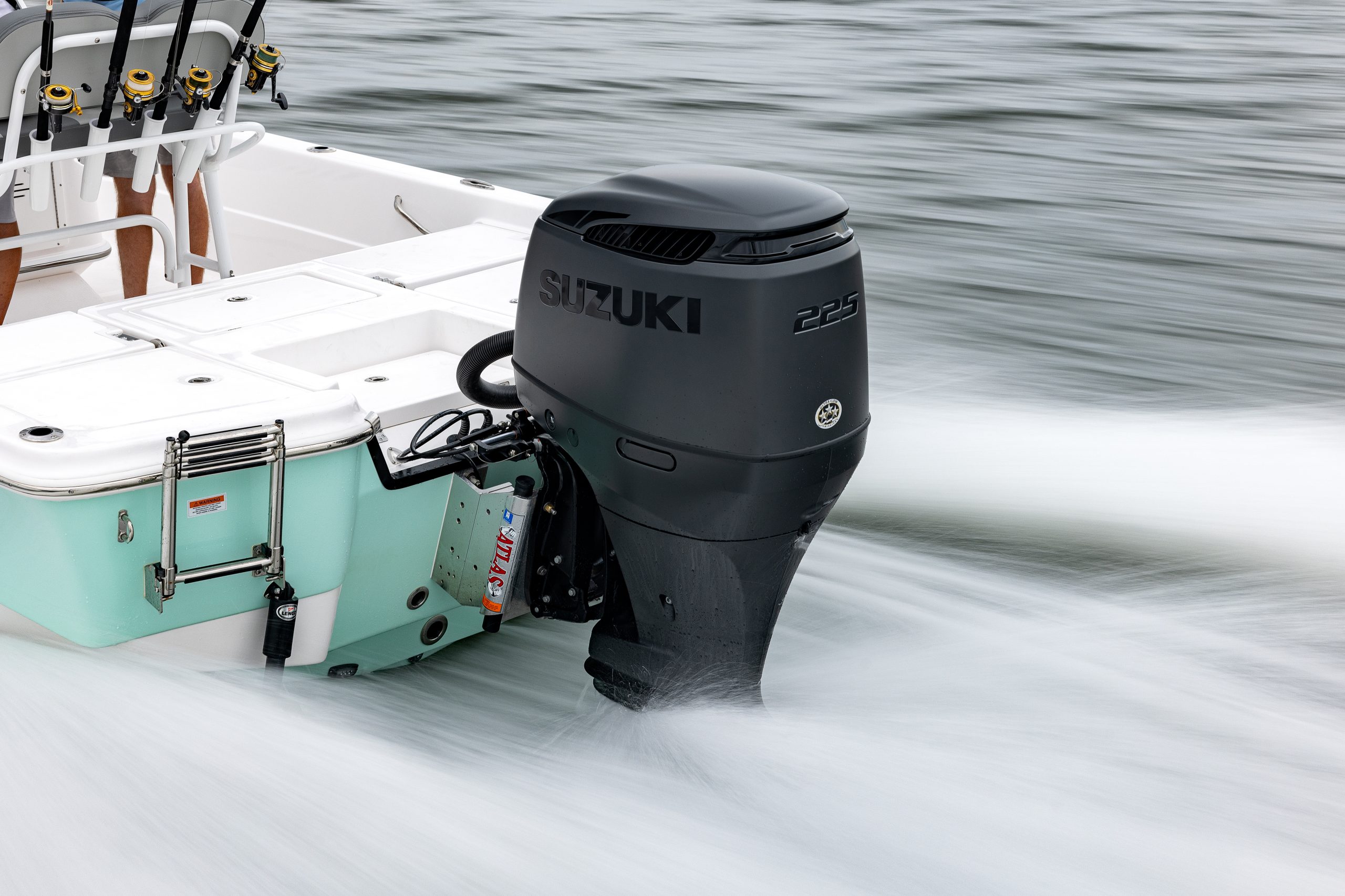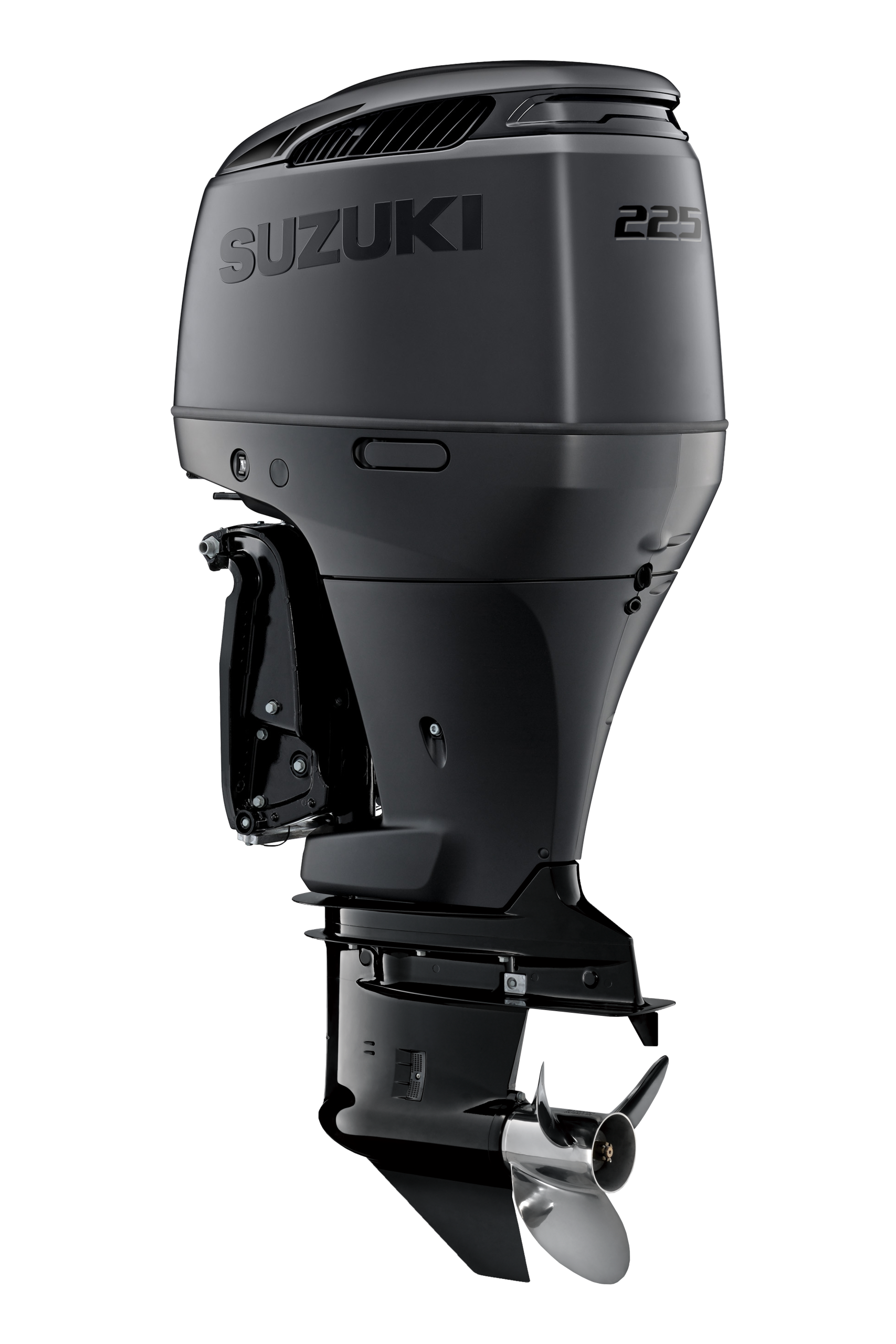 The new STEALTH DF225T is a 3.6L V-6 engine with mechanical controls, compatible with Suzuki’s CAN Bus for features like auto trim, keyless start, and troll mode. It includes dual overhead cams, 24 valves, variable valve timing, multi-stage induction, and enhanced cowling for improved performance and efficiency.