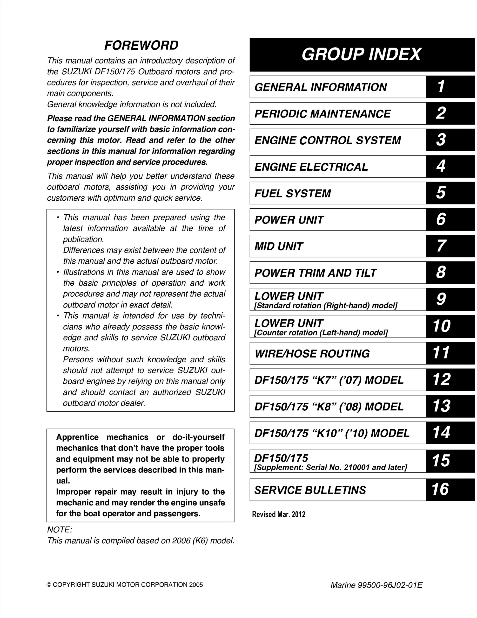 To request a printed copy of this manual, please contact your local authorized Suzuki Marine USA dealer. Technical manuals are viewable digitally, but are not printable.